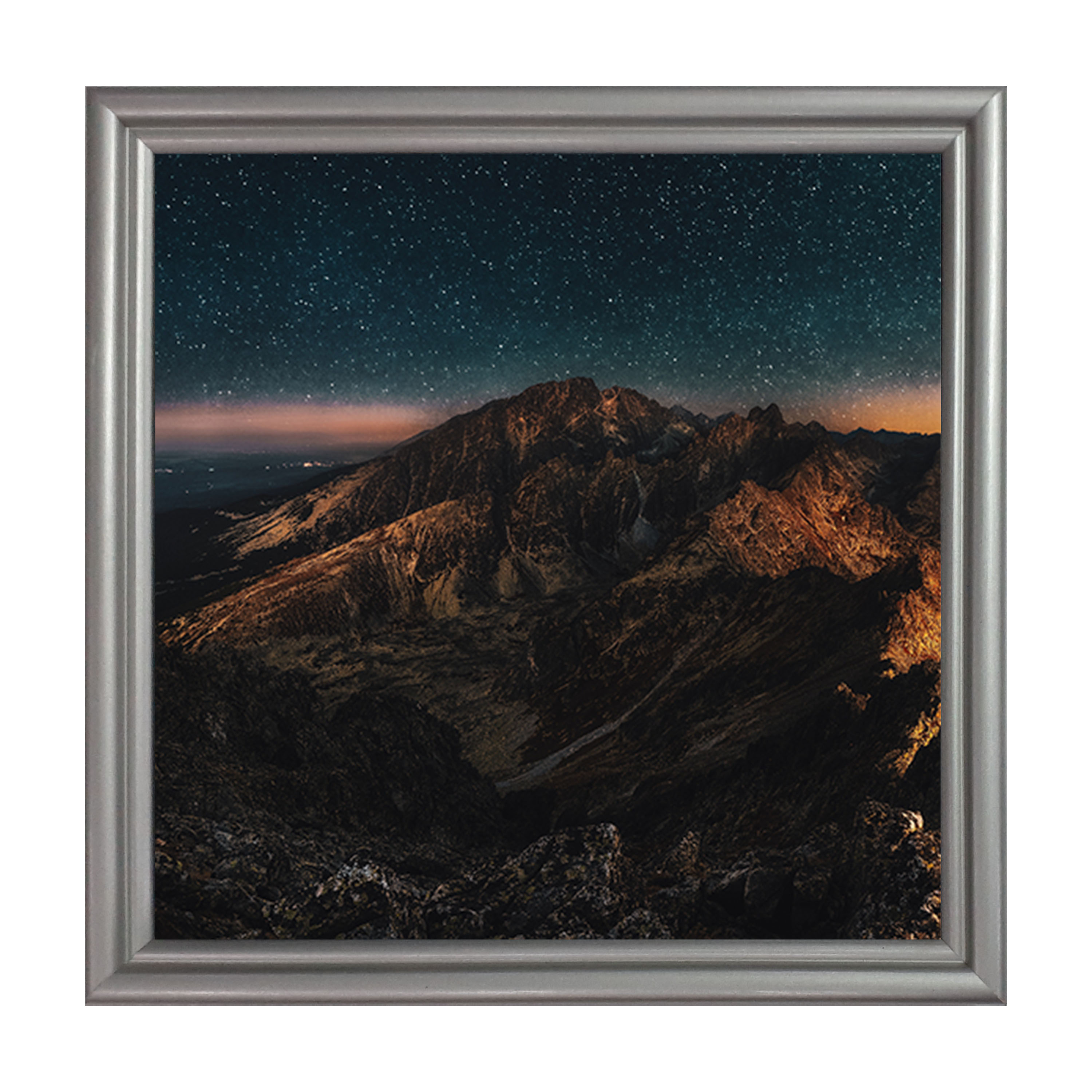 Silver wood frame.